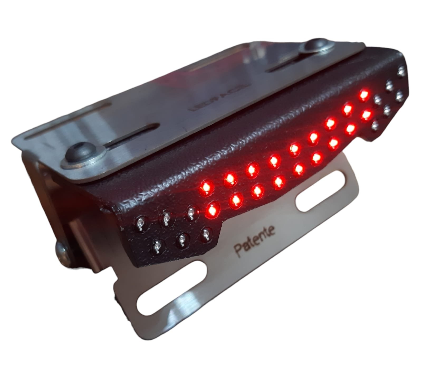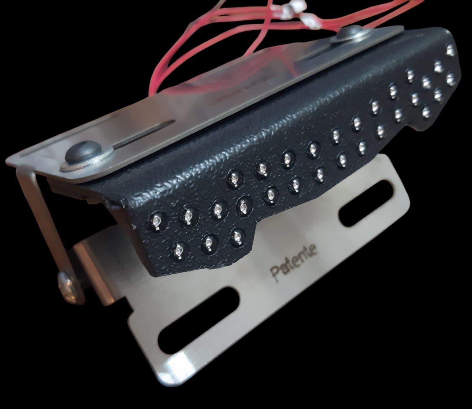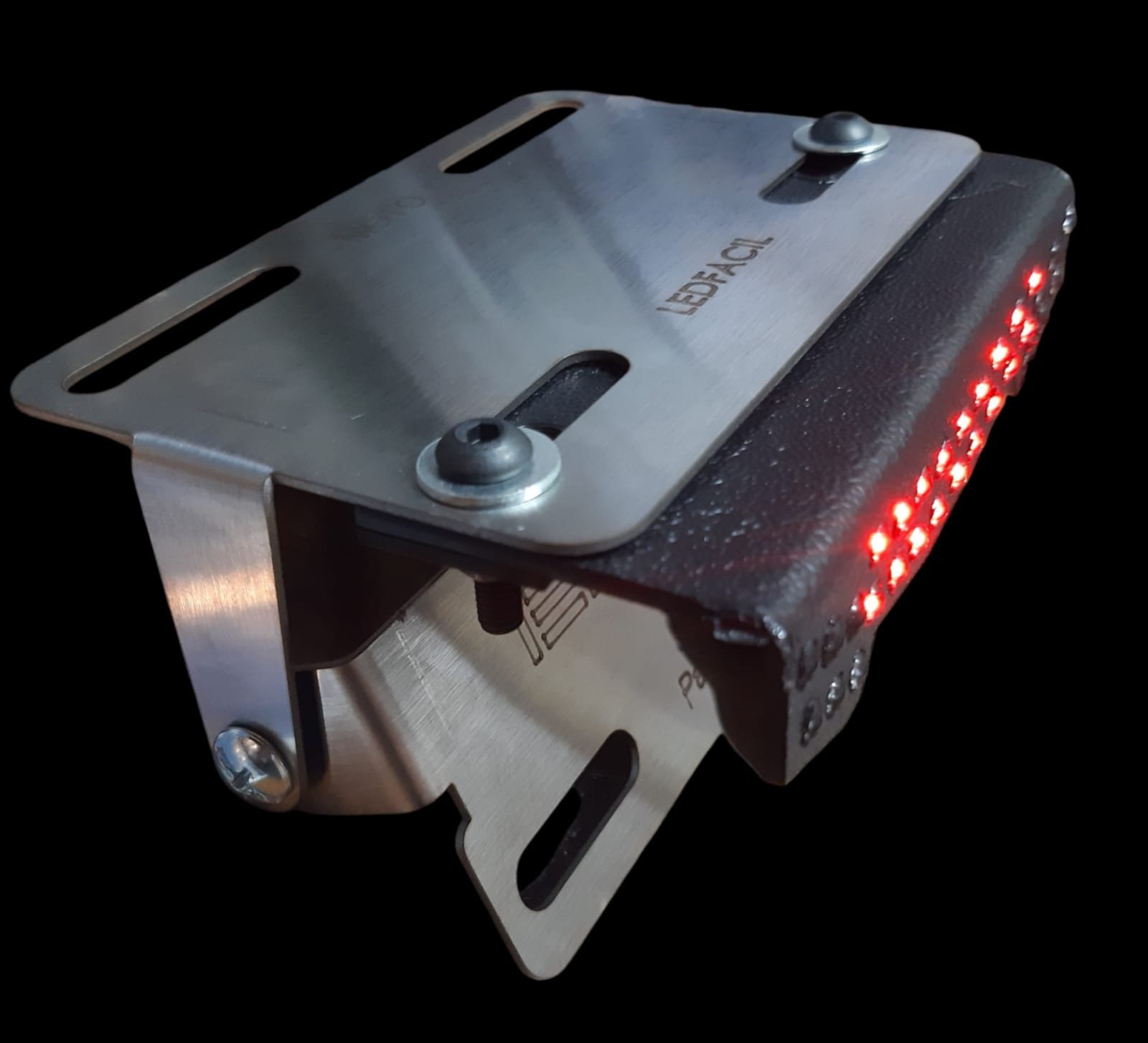 Tiene areas de sujeción adaptables a gran cantidad de motos. Se sujetan al cuadro, sobre el portapatente van los leds y la patente. Ver fotos.